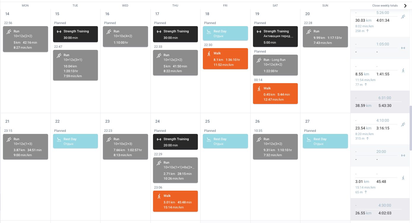 - Каждую неделю план составляется с учётом вашего текущего уровня и того, как прошла предыдущая неделя